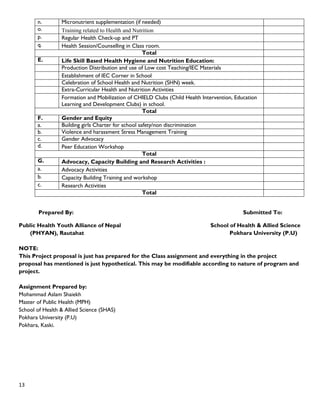 Project Proposal On Promotion Of School Health And Nutrition Poshan